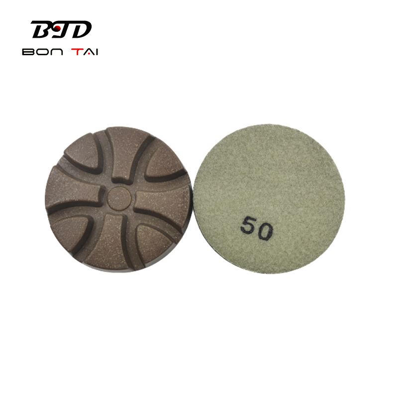 This 3 inch torx polishing pad is a new model designed by our engineer, the thickness is 10mm, grits 50#~3000# are available. It is used for dry polishing concrete and terrazzo floor and is better suitable for the floor with medium hard or above.
