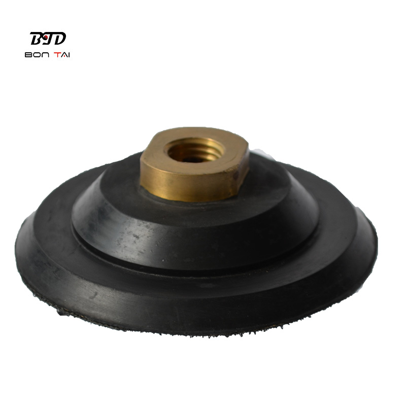 Rubber backed hook and loop pads for wet or dry polishing of stone and concrete surfaces, made of high quality, durable semi-flexible rubber. High-quality Velcro that attaches to polishing pads or other Velcro, is non-slip and durable, providing quick and easy access to replace all series of pads. Brass mandrel with internal water holes to help cool and lubricate the water flow required for wet polishing of working surfaces. The backing pads are made of rubber or aluminium, different materials determine the flexibility of the product and greatly extend its life. It also provides more options for a variety of jobs.