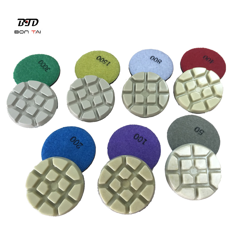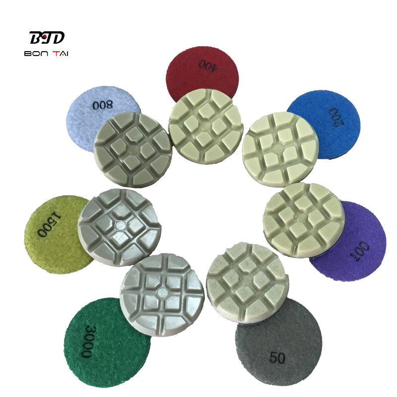 This 3″ hoop and loop resin polishing pad fits on concrete floor grinder, it’s widely used for polishing concrete, terrazzo, stone floor.